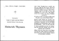 Eltern: Matthias Thyssen u. Elisabeth geb. Bonus; ∞ 5.11.1938 Wilhelmine op den Berg; 1 Tochter; 60 J. Mitgl. in Kirchenchor u. Bruderschaft |