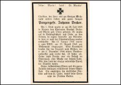 Gefallener 2. Weltkrieg; Tod durch Bombenangriff; Eltern: Barthel Decker u. Naria geb. Otten; 12.1.1943 zum Reichsabeitsdienst; 27.8.1943 Einberufung zur Wehrmacht |