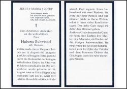 ∞ 21.4.1931 in Köln-Ehrenfeld Walter Ruhwinkel; 2 K. |