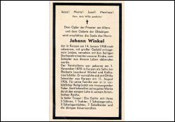 Schweres Leiden; Eltern: Leonhard Winkel u. Katharina geb. Schäfer; ∞ 11.8.1906 Ottilie Schneider aus Kerpen; 4 K. |
