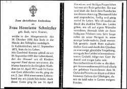∞ 23.9.1895 Gottfried Koenen, † 13.4.1915; 11 K., davon 5 †; ∞ 2.6.1916 Jakob Schnitzler, † 14.4.00 (Totenzettel unvollständig); langes Leiden |