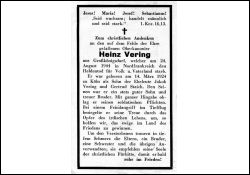 Gefallener 2. Weltkrieg; aus Großkönigsdorf; Eltern: Jakob Vering u. Gertrud geb. Staich; Tod durch Tieffliegerangriff |