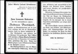 ∞ 7.3.1886 Anna Maria Reinfeld, † 10.11.1921; 8 K., davon 5 †; Beschwerden seines Leidens ertrug er mit beispielhafter Geduld |