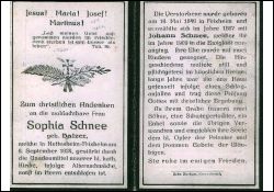 ∞ 1887 Johann Schnee, † 1909; 2 K.; nach Schlaganfall lange Jahre ans Haus gefesselt |