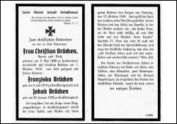 Opfer 2. Weltkrieg durch Flugzeugabsturz in Großkönigsdorf; Eltern: Christian Brücken u. Agnes geb. Dietz |