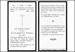 Eltern: Johann Inden u. Sybilla geb. Etzweiler; ∞ 24.2.1951 Gerd Piehl aus Pulheim; schwere Krankheit |