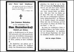 ∞ 8.5.1890 Hegemeister Maximilian Kraft, † 24.4.1930; 2 K., davon 1 früh † |