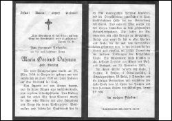 ∞ Juni 1898 Josef Dahmen auf Gut Altebrück bei Norf; war den Kindern ihres Mannes aus 1. Ehe eine echte Mutter; Druck in Neuss |
