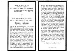 Langes, schweres Leiden; ∞ 15.1.1906 Elisabeth Schweren; 12 K., davon 5 †, davon 1 Tochter mit 33 J. † und 2 Söhne im 2. Weltkrieg gefallen, der 3. Sohn † 1948 an tückischer Krankheit, die er sich im Krieg geholt hatte; 1 Sohn kam vor wenigen Wochen aus der Gefangenschaft zurück |