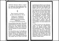 Lasnge, schwere Krankheit; Mitgl. Amtsvertretung; Ehrenvorsitzender des Turnvereins; Mitgl. St. Sebastianus-Schützenbruderschaft; Eltern: Johann Bellen u. Katharina geb. Becker; ∞ 7.2.1914 zu Nievenheim Katharina Weiler; 5 K., davon 1 früh †; |