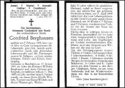 Eltern: Wilhelm Berghausen u. Anna Gertrud geb. Emunds; ∞ 11.5.1897 in Gohr in 2. Ehre Anna Maria Sibylla Winkels, Tochter von Simon Winkels u. Maria Therese geb. Weiler, † 17.4.1949; 53 J. Ehe; 10 K., davon 1 †; |