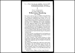 Eltern: Gutsbesitzer Johann Bieger u. Wilhelmine geb. Niefer; Elternhaus im Kloster Kamp am Niederrhein; ∞ 21.10.1896 Brauereidirektor Theodor Homborg in der alten Widume in Bochum; 7 K., davon 2 früh †; jüngster Sohn Dr. med. Karl Homborg † 2.11.1934 mit 27 J.; pflegte 20 J. ihren schwer erkrankten Mann |