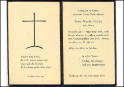 81 J.; über 57 J. in der Genossenschaft der Christenserinnen; Generaloberin 1933-1947; 18.4.1900 Novizin, 29.10.1903 Profess; in den Kriegsjahren Genossenschaft durch Evakuierung zerstreut; sie selbst blieb im zerstörten Mutterhaus in Aachen; Druck in Gei |