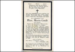 Mitgl. Mütterverein; ∞ 27.11.1906 Friedrich greib aus Ohlenberg; 12 K., davon 8 †; 1 Sohn im 2. Weltkrieg in Russland vermisst |