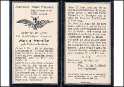 Maria Henrika, Sr., geb. Emsbach | Vorname: |