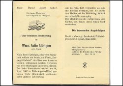 15-jährige, schwere Krankheit; ∞ 19.2.1906 Barthel Stümper, im 1. Weltkrieg gefallen; 4 K., davon 2 † |