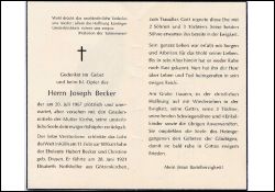 Eltern: Hubert Becker u. Christine geb. Dresen; ∞ 28.6.1921 Elisabeth Nothhelfer aus Götzenkirchen; 5 K., davon die beiden Söhne †; |