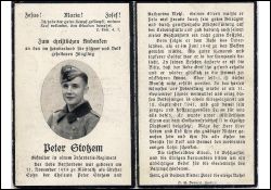 Gefallener 2. Weltkrieg; Eltern: Peter Stotzem u. Katharina geb. Mehl; Einberufung Juni 1940; am 11.9.1941 in Kämpfen vor Petersburg (Leningrad) schwer verwundet; Soldatenfriedhof II in Szoltzv, Russland; 12 Geschwister |