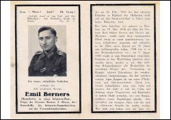 Gefallener 2. Weltkrieg; Eltern: Karl Hubert Berners u. Therese geb. Mertens; 1938 RAD; 9.1.1940 Einberufung, zuerst Westfeldzug, dann östl. Kriegsschauplatz; Soldatenfriedhof Tokari; Druck in Euskirchen |