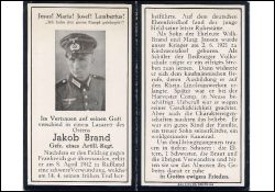 Gefallener 2. Weltkrieg; am 8.4.1942 schwer verwundet; Eltern: Wilhelm Brand u. Margarete geb. Jansen; Ausbildung als Kaufmann b. Rhein. Linoleumwerken in Bedburg; später b. Harvester Comp. in Neuss beschäftigt; verlobt |