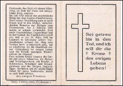 Gefallener 2. Weltkrieg; kaufm. Beruf; ∞ 24.9.1936 Margarete Henk aus Heimbach; 1 Sohn; Einberufung Juli 1942; am 2.2.1945 schwer verwundet; Druck in Düren |