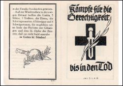 Gefallener 2. Weltkrieg; Feuerungsmaurer; ∞ 23.5.1930 Katharina Hansen; 4 K.; Mai 1942 Einberufung; Ehrenfriedhof Ssaki |