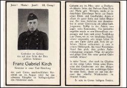 Gefallener 2. Weltkrieg; Eltern: Peter Kirch u. Maria geb. Wertgen; 1941 Einberufung; |