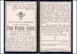 ∞ 1874 Peter Josef Kallen, †; ∞ Wilhelm Kallen; in den letzten Jahren lange, schwere Krankheit; 6 überlebende Kinde; Druck in Büttgen |