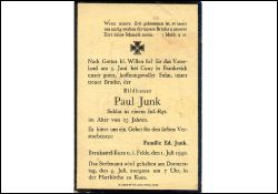 Gefallener 2. Weltkrieg; aus Bernkastel-Kues; 25 J.; Bildhauer; Datum des Totenzettels: 1.7.1940 |