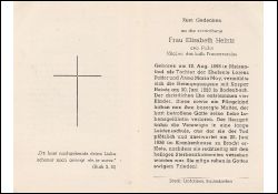 Eltern: Lorenz Peffer u. Anna Maria geb. May; ∞ 30.6.1923 in Bodenbach Kaspar Heintz; 4 leibl. K. sowie 1 Pflegekind; Druck in Kaldenkirchen |