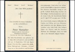 ∞ 10.9.1931 Agnes Breuer; 2 K.; Diplom-Landwirt; 10 J. Kreislandwirt u. Kreisbauernvorsitzender; Vors. Molk.-Gen. Kuchenheim; schweres Herzleiden; Druck in Euskirchen |