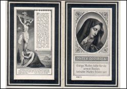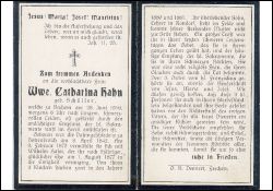∞ 9.2.1872 Wilhelm Hahn, † 1.8.1877; 3 K., davon 2 in den Jahren 1880 u. 1881 †; Überlebender Sohn, lehrer in Rondorf, steht als Soldat im 1. Weltkrieg im Felde; Mitgl. 3. Odenvom hl. Franziskus; Druck in Frechen |