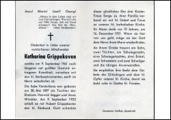 Längere Krankheit; Eltern: Heinrich Segger u. Anna geb. Winckler; ∞ 9.9.1925 Hubert Grippekoven, † 16.12.1951; 3 K. |