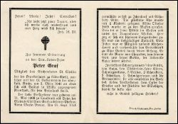Gefallener 2. Weltkrieg; starb an Folgen einer als Soldat in Afrika zugezogenen Krankheit: schweres Lungenleiden; Eltern: Christian Graf u. Anna Maria geb. Breuer; ∞ 15.9.1935 in Ichendorf Elisabeth Bühr; 2 K.; Okt. 1939 Einberufung; Mitgl. Kirchenchor; Druck in Bergheim/Erft |