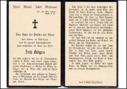 Langes Leiden; Eltern: Karl Gilges u. Maria geb. Heibel; Mitgl. kath. Gesellenverein des Adolf Kolping; zog nach Kerpen; ∞ 9.1.1938 Stephanie Schneider aus Kerpen; 1 K.; Druck in Düren |
