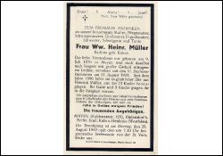 Langes Leiden; ∞ 1896 Heinrich Müller, † ; 13 K., davon 3 † |