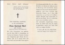 Eltern: Theodor Corsten u. Magdalena geb. Christ; ∞ 8.1.1916 Josef Moll aus Jacckerath; 7 K., davon 1 Sohn im 2. Weltkrieg gefallen; Druck in Erkelenz |