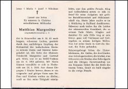 Liegenschaftsverwalter a. D.; Eltern: Friederich Margreiter u. Gertrud geb. Mörs; ∞ 24.4.1938 Maria Kinnen; 3 K.; im 2. Weltkrieg in Russland; schmerzvolle Krankheit |