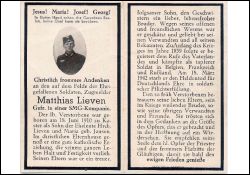 Gefallener 2. Weltkrieg; Eltern: Heinrich Lieven u. Maria geb. Jansen; 1939 Einberufung: Soldat in Belgien, Frankreich u. Russland |