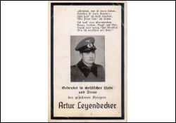Gefallener 2. Weltkrieg; Eltern: Anton Leyendecker, † 6.6.1933, u. Mathilde geb. Brück; 1938 RAD, anschließend Wehrmacht; Druck in Wissen/Sieg |