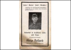 Gefallener 2. Weltkrieg; Einberufung Anfang Dezember 1942; auch Bruder Josef im 2. Weltkrieg gefallen; Druck in Wissen/Sieg |