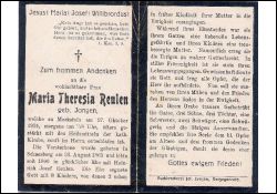 ∞ 1896 Heinrich Josef Reulen; 8 K., davon 2 früh †; Druck in Herzogenrath |
