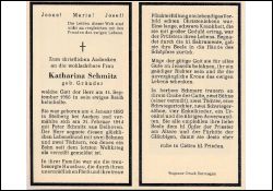 ∞ 21.2.1914 Peter Schmitz aus Delhoven; 4 K., davon 1 Sohn im 2. Weltkrieg vermisst; lange, schwere Krankheit; Druck in Dormagen |