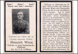 Gefallener 2. Weltkrieg; Eltern: Heinrich Wintz u. Margaretha geb. Henn; 14.4.1942 Einberufung; am 7.8.1943 schwer verwundet |
