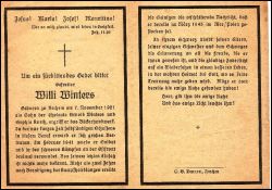 Gefallener 2. Wltkrieg; Eltern: Arnold Winters u. Sophia geb. Kurth; Bäckerhandwerk; Febr. 1941 Einberufung; an der Ostfront dreimal verwundet; erst 2 J. nach Kriegsende Nachricht von seinem Tod |