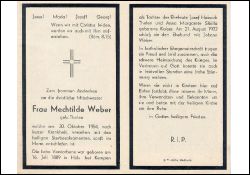 Eltern: Josef Heinrich Thelen u. Anna Margarete Sibilla geb. Kaiser; ∞ 21.8.1922 Johann Weber; schwere Heimsuchung des 2. Weltkrieges; Druck in Bedburg/Erft |