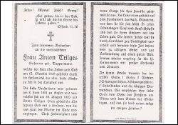 ∞ 30.8.1903 Anton Trilges; 6 K., davon 2 †; Krankheit in den letzten Jahren; Druck in Bedburg/Erft |