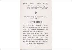 ∞ 30.8.1903 Susanna Tappermann, † 1949; Druck in Bedburg/Erft |