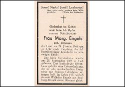 ∞ 1937 Wilhelm Engels aus Bedburg-Broich; 3 K.; Tod nach der Geburt ihres 3. Kindes |