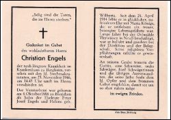 Eltern: Peter Josef Engels u. Helene geb. Wilbertz; ∞ 24.4.1914 Maria Königs; lange Jahre bei Ölmühle Thywissen in Neuss beschäftigt; Druck in Bedburg/Erft |